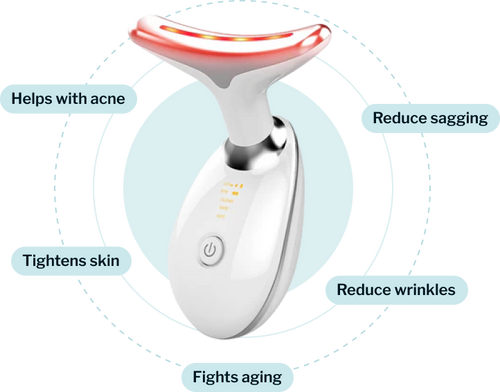 The gentle microcurrents emitted by the device help to stimulate the facial muscles, leading to improved muscle tone and firmness. This helps plump and smooth the appearance of fine lines and wrinkles by restoring elasticity and definition to the skin. The massaging motion of the device helps to increase blood circulation and lymphatic drainage in the treatment area. This boost in circulation supports collagen production and skin rejuvenation. The massage also helps to physically break up and minimize the appearance of wrinkles and fine lines. The LED Light therapy also supercharges lifting progress by promoting collagen production which aids in skin elasticity and firmness.